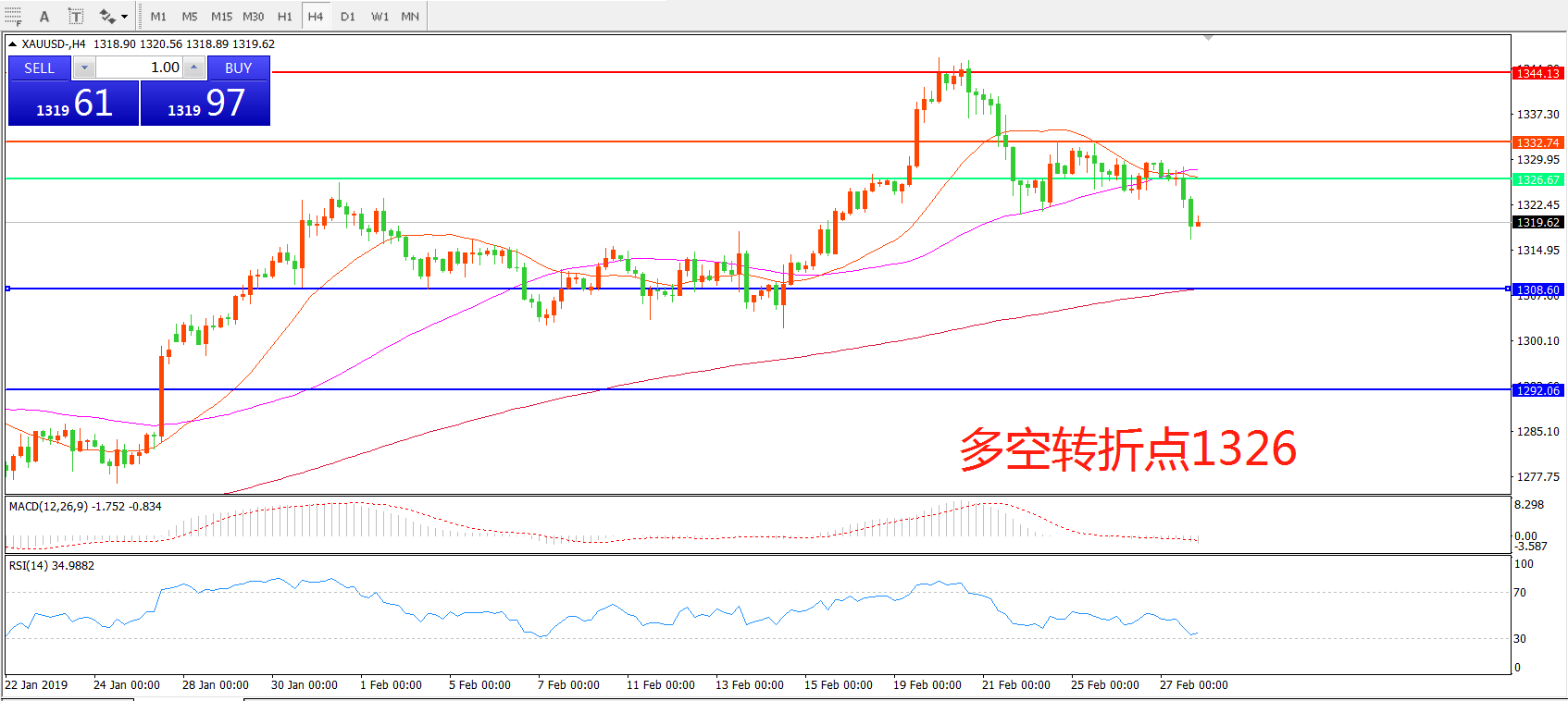 多空转折点:1326.00