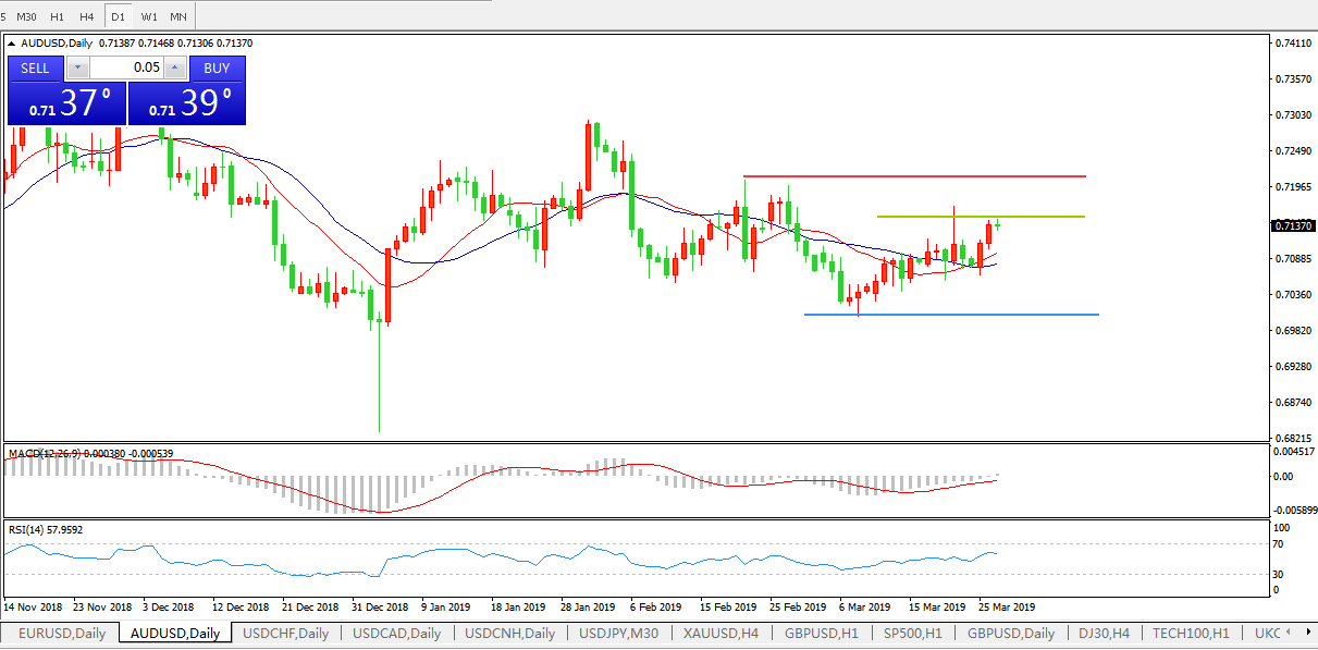 交易策略:在0.7140之下,看跌,目标价位为0.6990,然后为0.6940