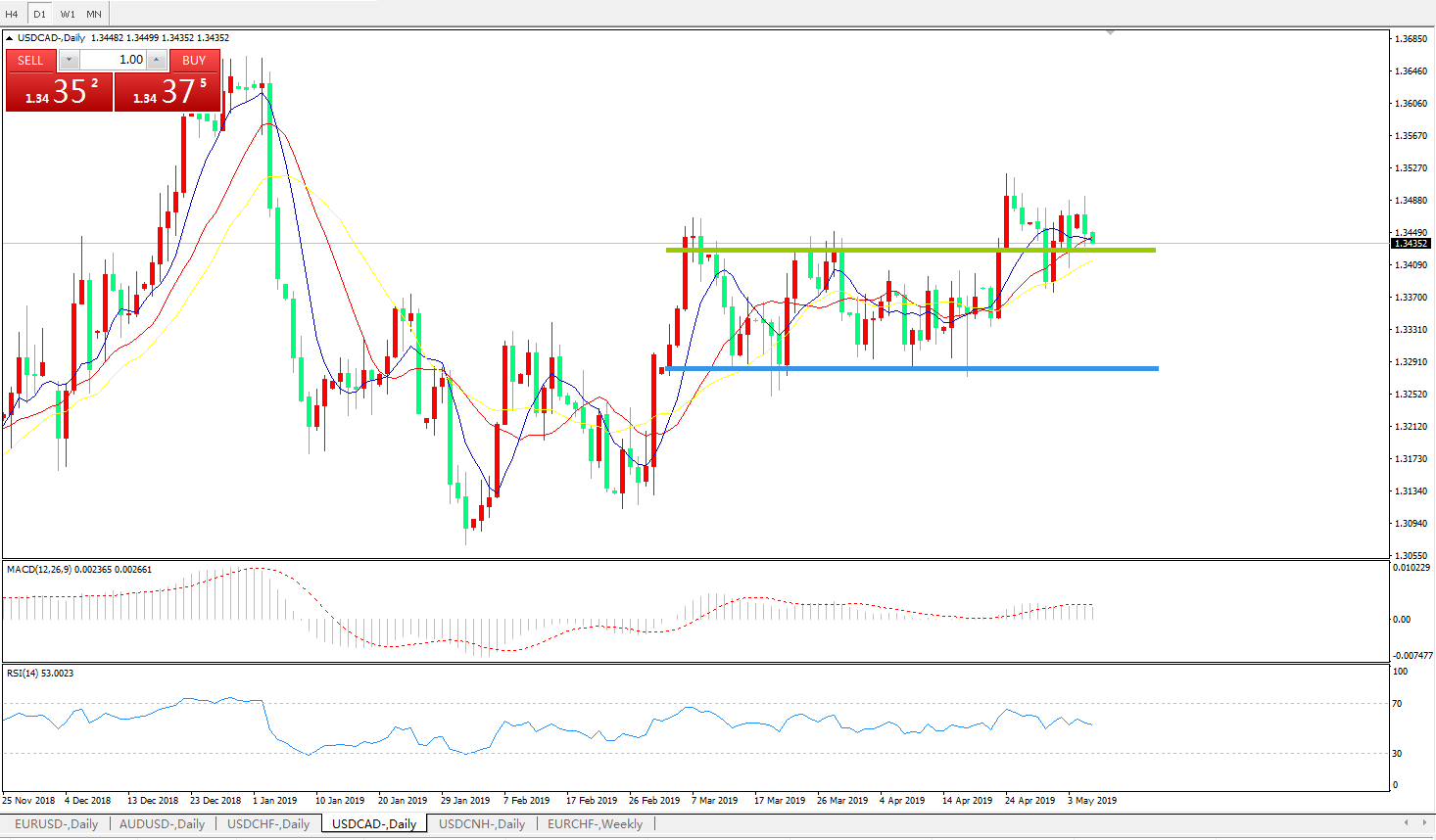 美元兑加元USDCAD    日线