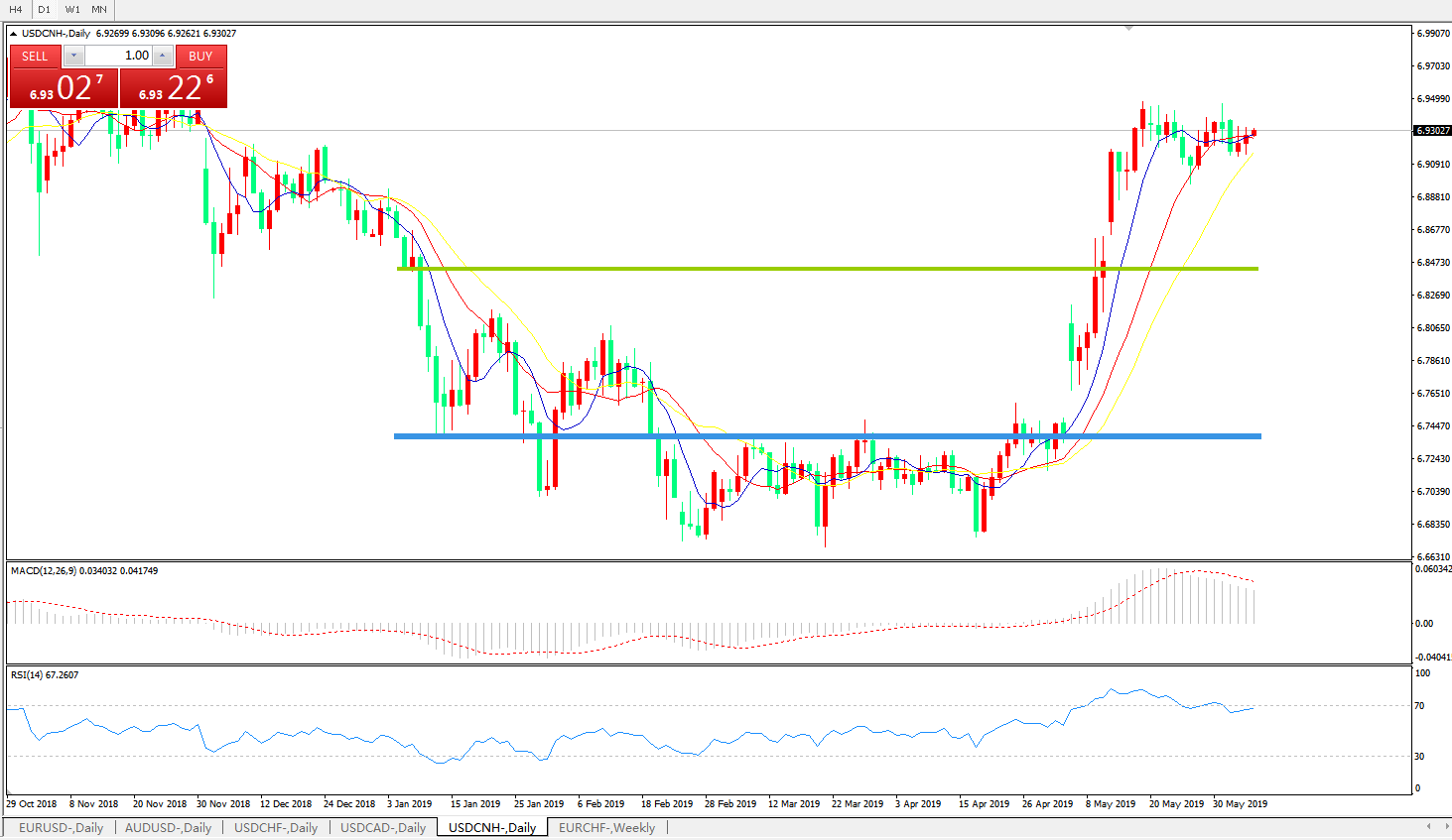 技术面简析:日线图均线粘合但整体维持攻势,MACD在0轴上方运行但动能柱轻微缩量,RSI超买区域附近运行有再度走强迹象,汇价强力上攻后宽幅强势整理,预计短期汇价有下行回踩需求,中期重点关注中美贸易争端后续进展。
