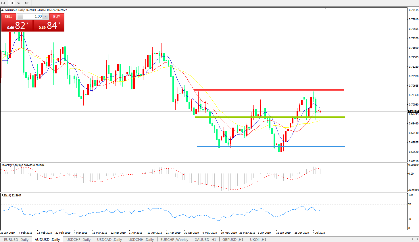 交易策略:0.6960上方看涨,目标0.70200.7100