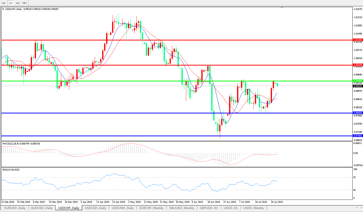 美元兑瑞郎USDCHF 日线图: