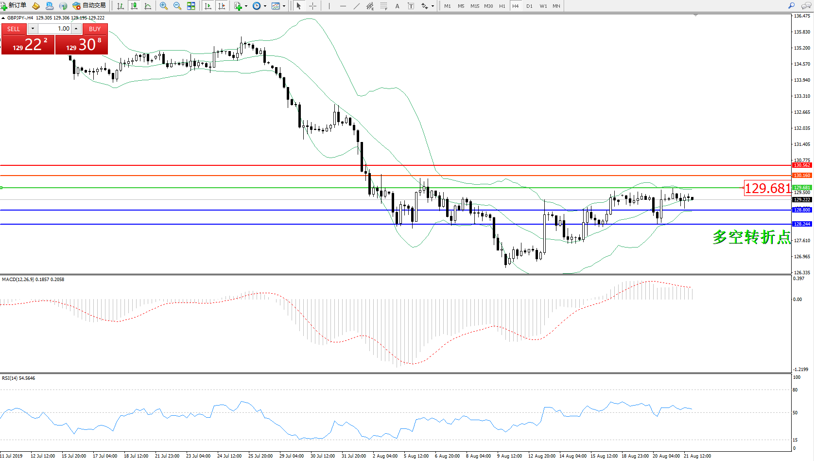 交易策略:129.681下方看跌,目标128.800、128.244