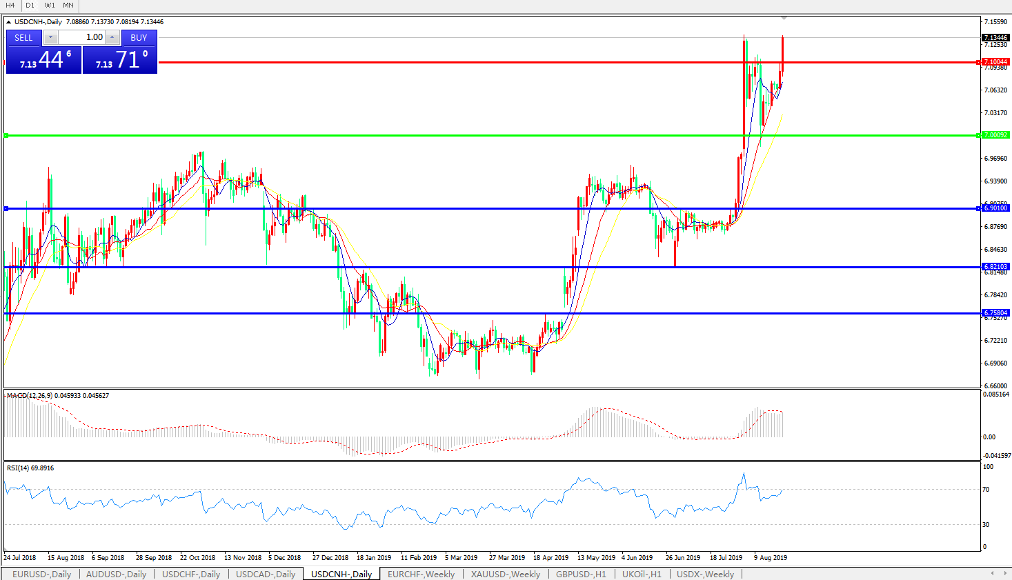 交易策略: 在7.0000之上,看涨,目标价位为7.1000,然后为7.2000。