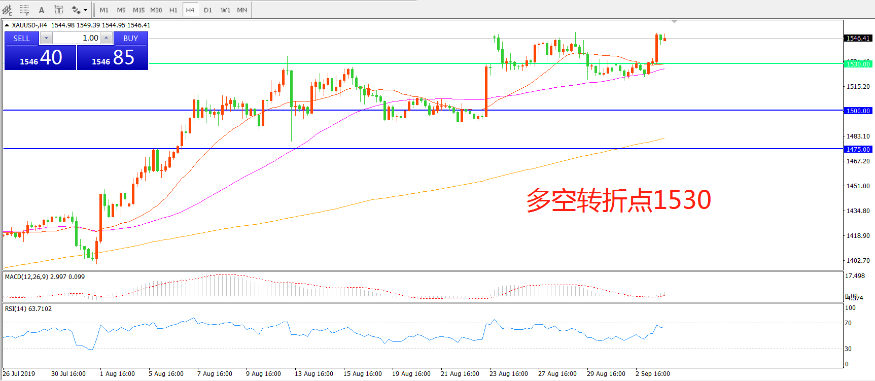 多空转折点:1530.00