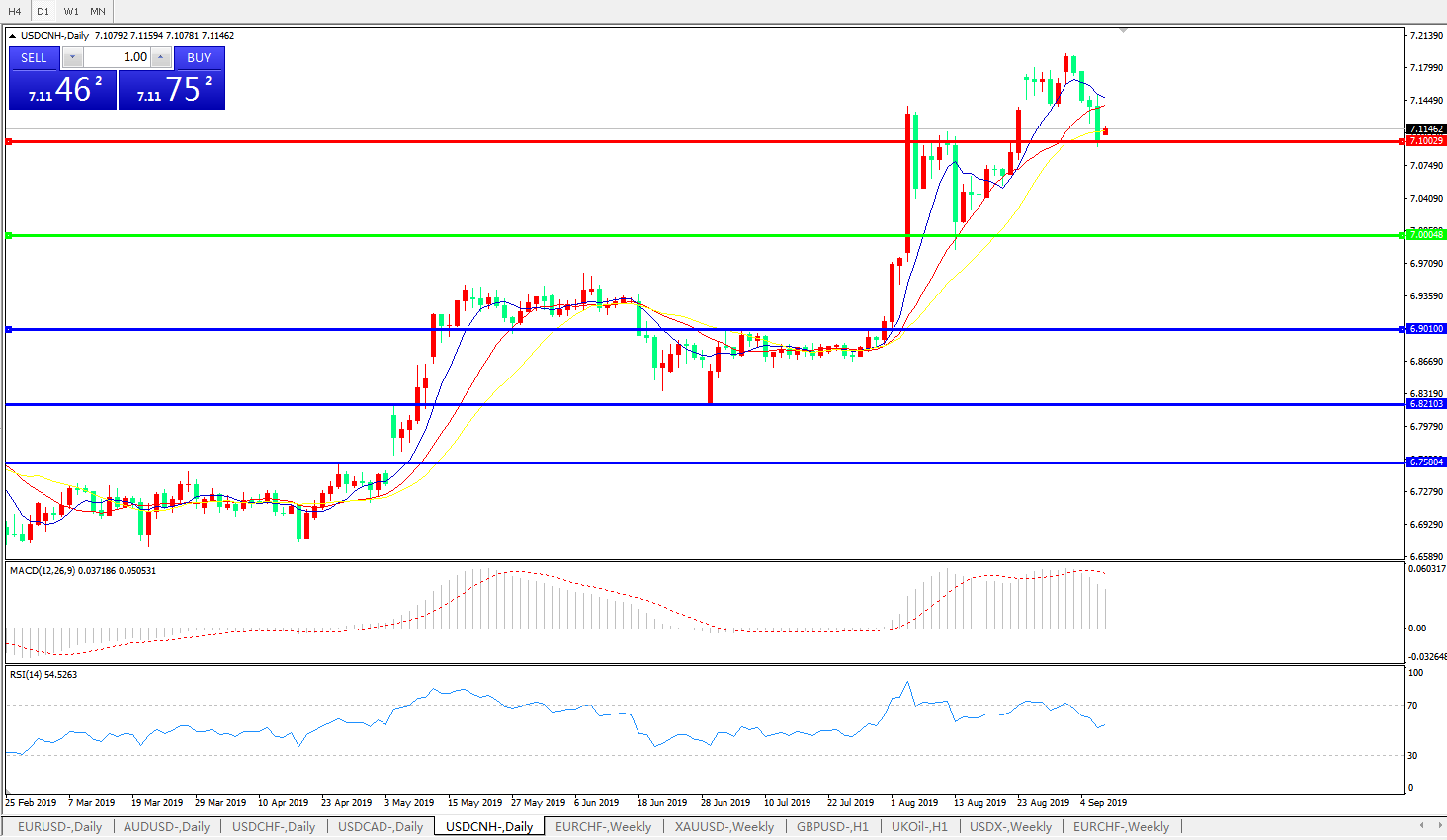 交易策略: 在7.0000之上,看涨,目标价位为7.1000,然后为7.2000。