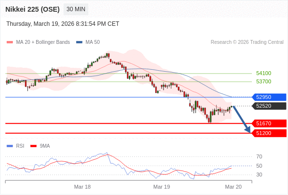 在 52950 之下,看跌,目标价位为 51670 ,然后为 51200 。