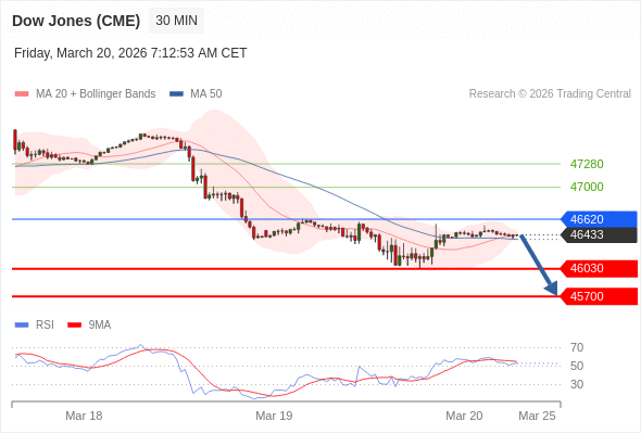 在 46620 之下,看跌,目标价位为 46030 ,然后为 45700 。