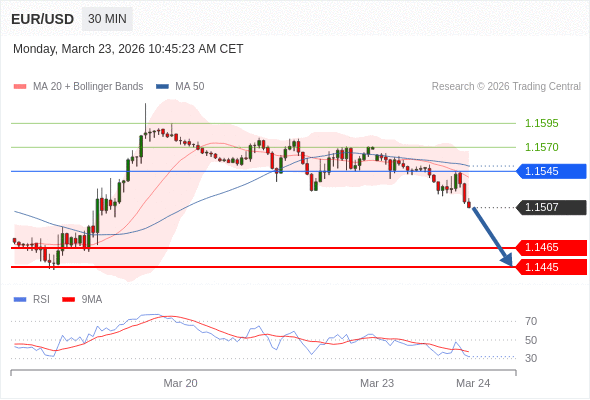 在 1.1545 之下,看跌,目标价位为 1.1465 ,然后为 1.1445 。