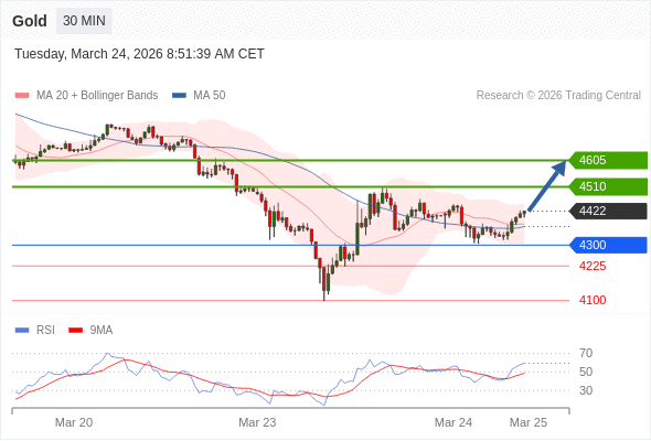 在 4300 之上,看涨,目标价位为 4510 ,然后为 4605 。