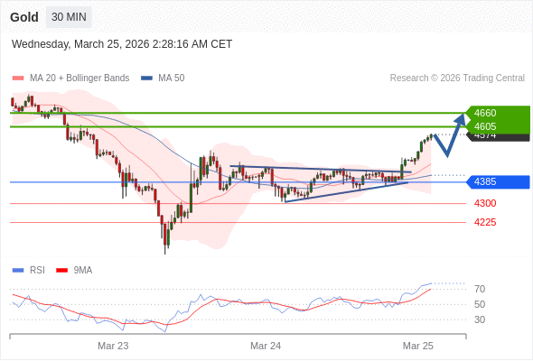 黄金现货 当日内: 目标位为4660。