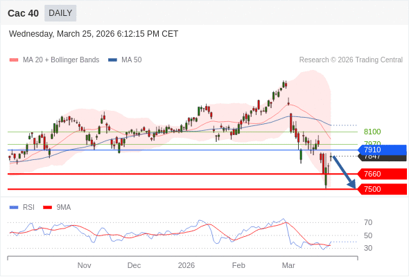 Cac 40 短线: 没有明显变化趋势。