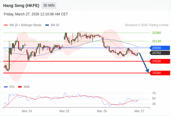 交易策略: 在 24930 之下,看跌,目标价位为 24530 ,然后为 24180 。