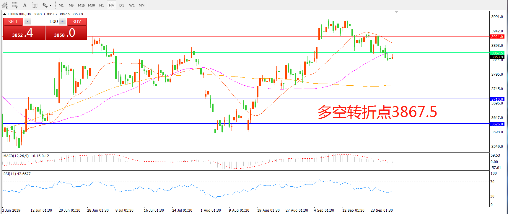 多空转折点:3867.50