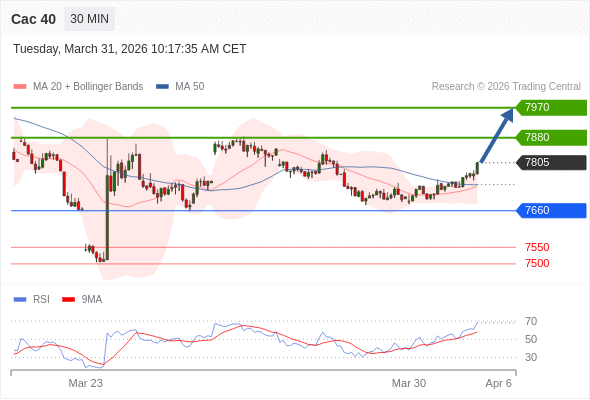 在 7660 之上,看涨,目标价位为 7880 ,然后为 7970 。