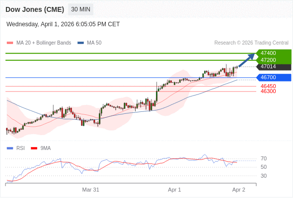 在 46700 之上,看涨,目标价位为 47200 ,然后为 47400 。