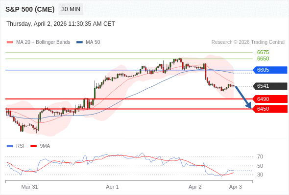 在 6605 之下,看跌,目标价位为 6490 ,然后为 6450 。
