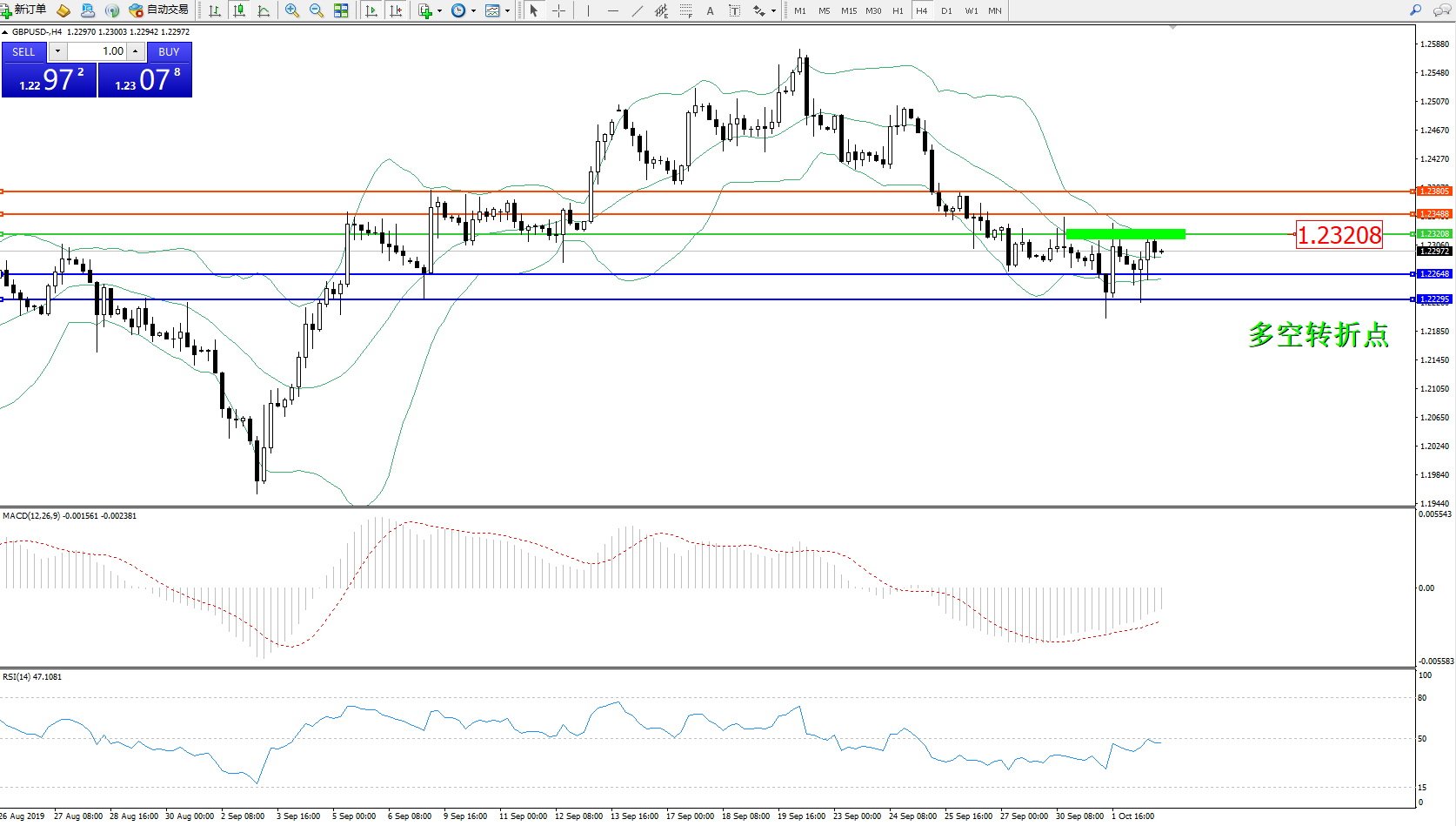 交易策略:1.23208下方看跌,目标1.22648、1.22295