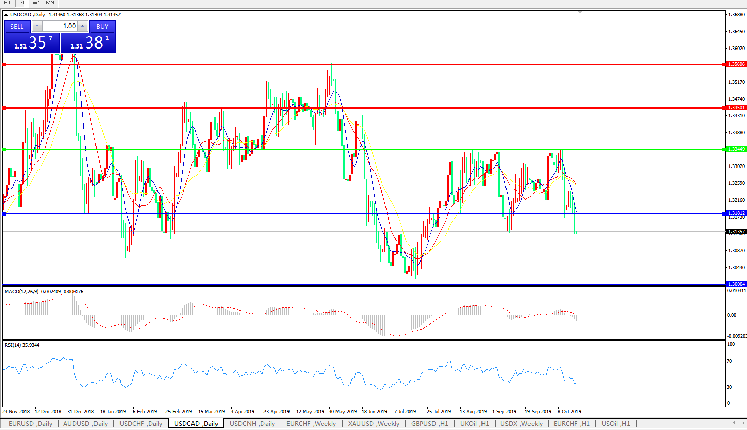 美元兑加元USDCAD    日线