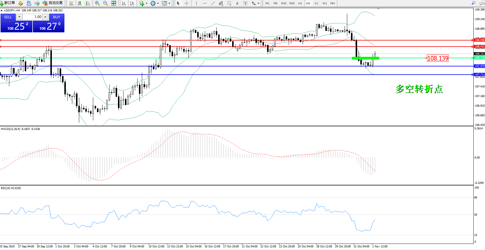 交易策略:108.139上方看涨,目标108.431108.596