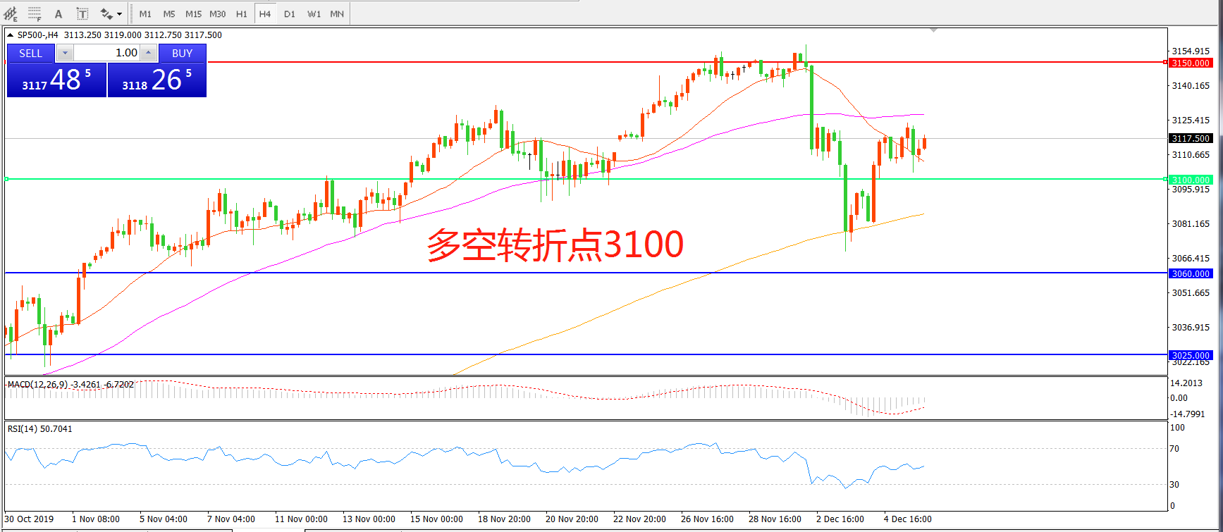 多空转折点:3100.00