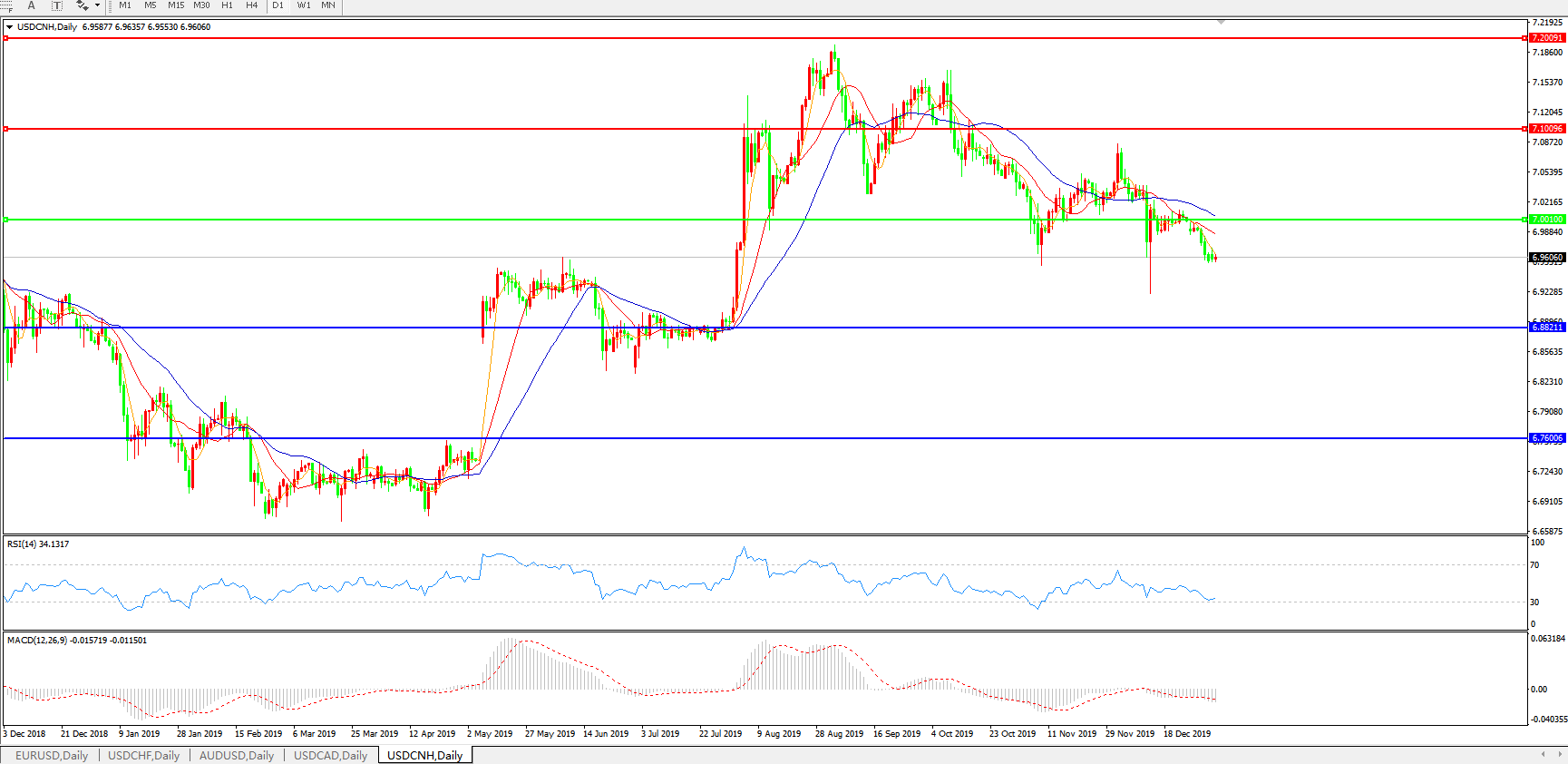 美元兑人民币USDCNH    日线图:
