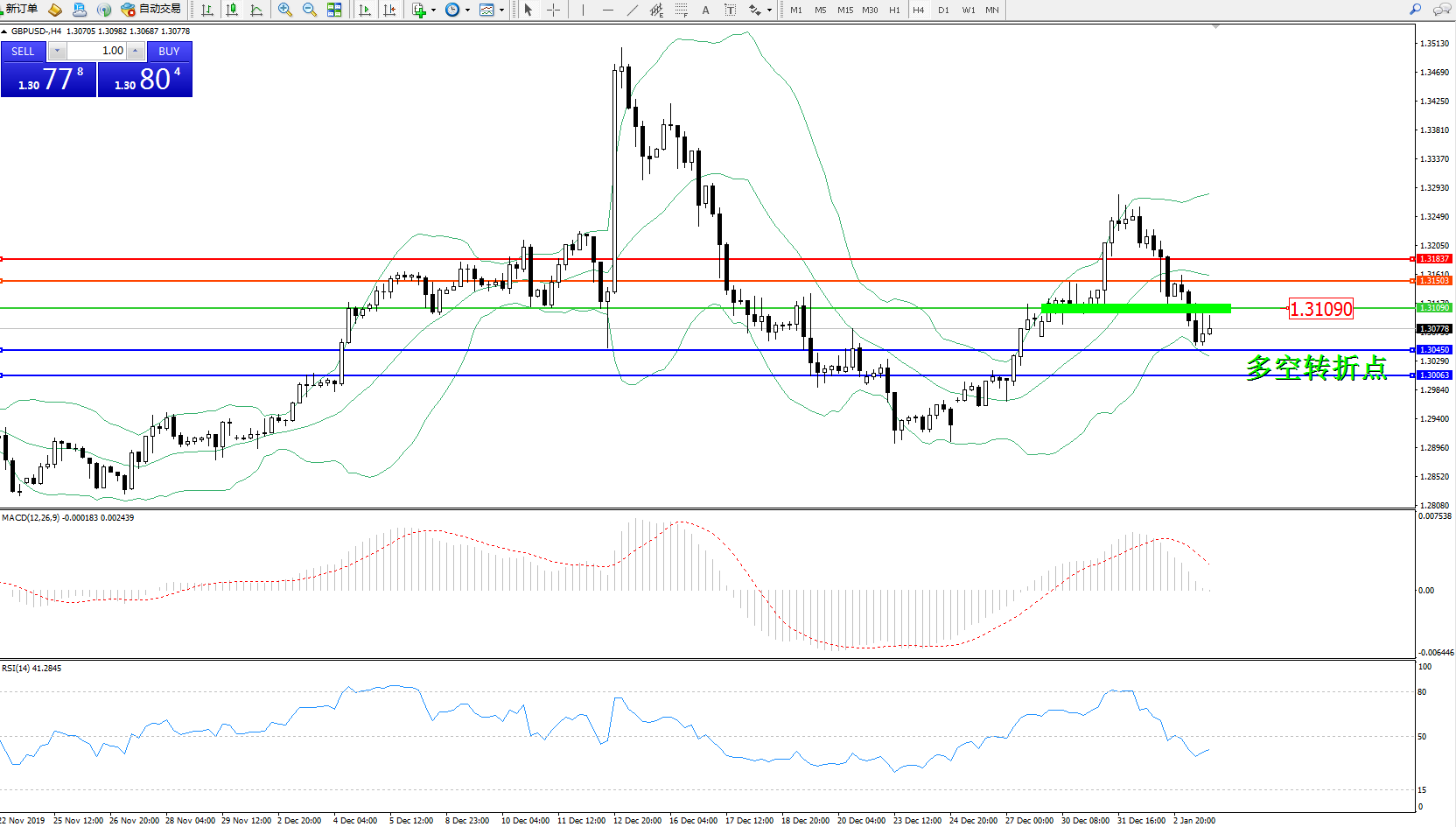 交易策略:1.31090下方看跌,目标1.30450、1.30063