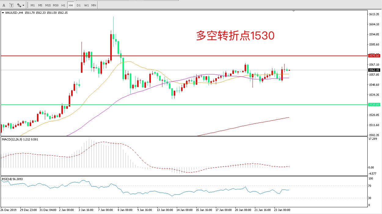 周四(1月24日),继湖北武汉市“封城”后,黄冈、鄂州、赤壁、仙桃、潜江市发布通告,宣布不同程度停运城市公共交通。对冠状病毒的担忧导致避险情绪回升,黄金探底回升15美元至1560美元/盎司附近。 同时,欧洲央行行长拉加德表示,需要长时间高度宽松的政策立场,宽松的货币环境对金价中期走势形成支撑。