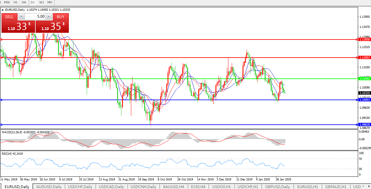 欧元兑美元周二日内在低位盘整,延续周一以来的颓势,继续回吐上周录得的涨幅。一方面,投资者重新开始担忧英国脱欧后继谈判的前景,另一方面,美元指数的持续强势也令其最大对手盘欧元格外承压;隔夜美国发布的1月ISM制造业数据一改此前去年年底的颓势大幅向好,令美元跳涨同时也更加凸显了美欧之间的经济动能落差。而市场据此押注美国总统特朗普在周三亚市早间的国情咨文会继续释放乐观信号,这料继续提振美元指数并令以欧元为首的非美货币承压; 与此同时,日内全球风险情绪在利空出尽后继续好转,带动风险商品货币反弹,但对欧元的提振效果却不明显,这使得欧元跑输了除避险日元之外的多数G10货币。后市仍有可能再度承压下踩1.10心理关口