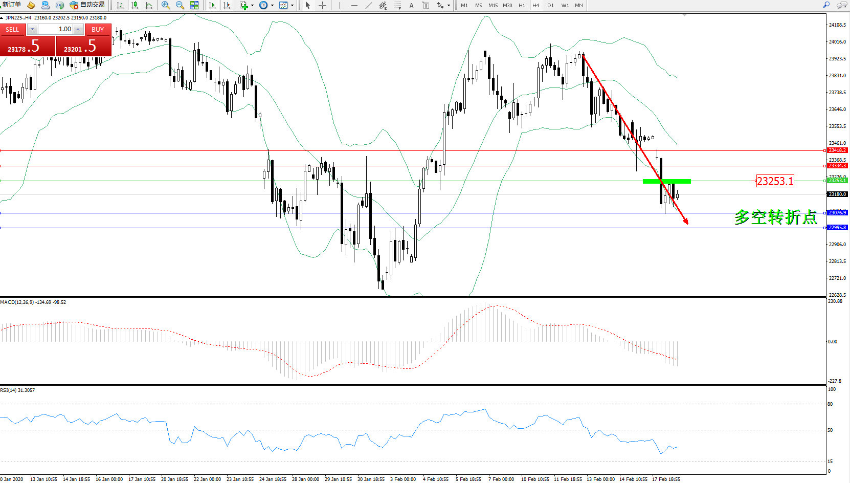 交易策略:23253下方看跌,目标23076、22995