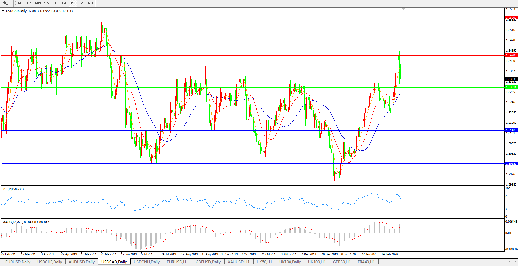 美元兑加元USDCAD    日线图: