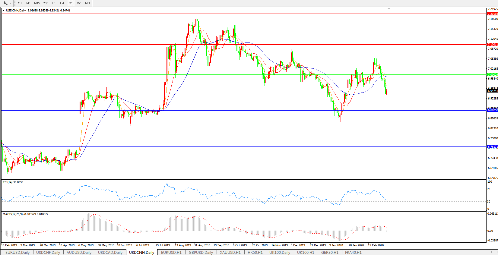 交易策略: 在7.0000之下,看跌,目标价位为6.8820,然后为6.7600。