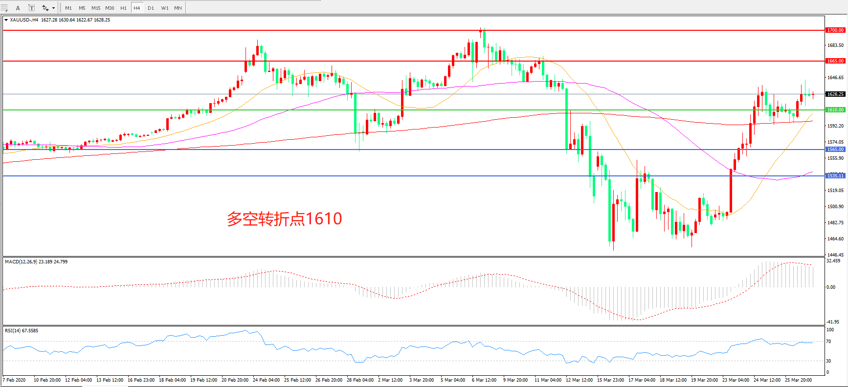 交易策略:在1610.00之上看涨,目标1665.00   1700.00