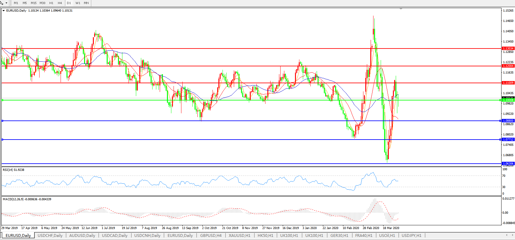 交易策略:1.1000上方看涨,目标1.1100、1.1200