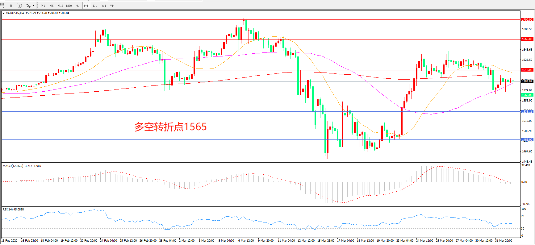 备选策略:在1565.00之下看跌,目标1535.00 1485.00
