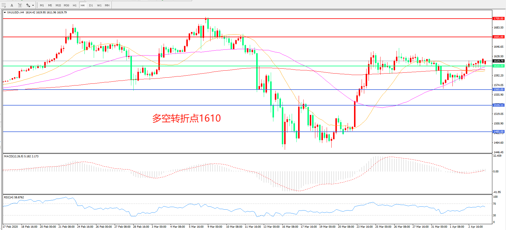 多空转折点:1610.00