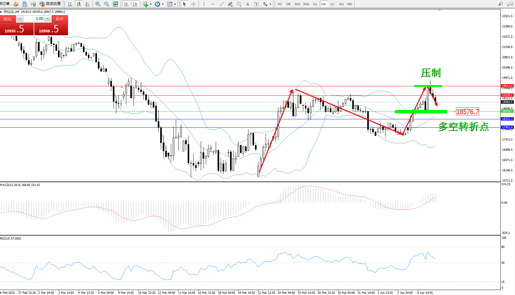 日经指数JPN225——4小时K线图显示: