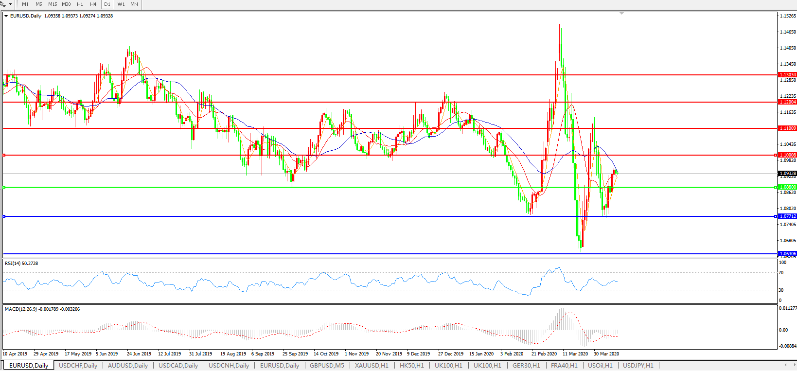 欧元兑美元EURUSD 日线图: