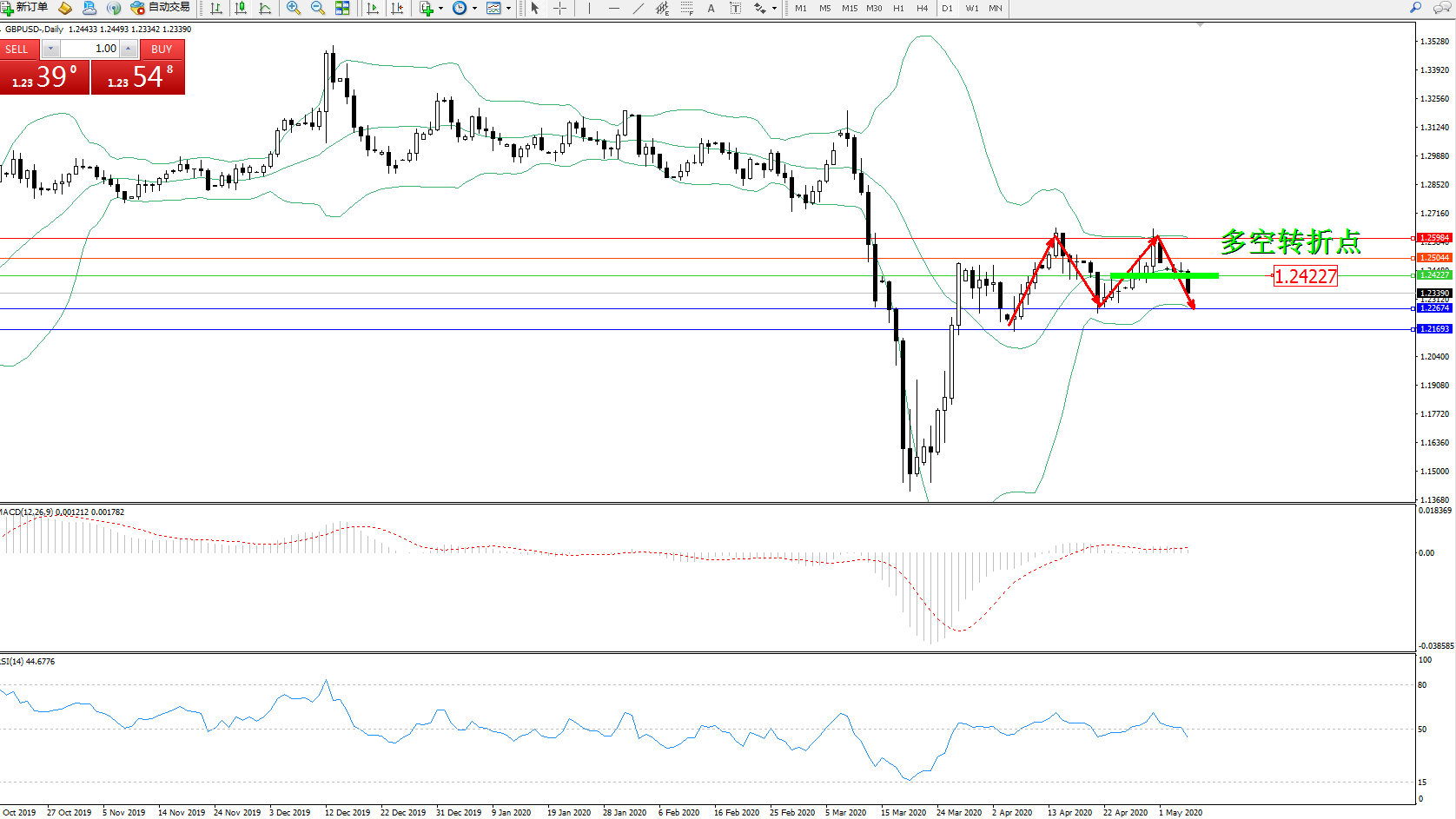 交易策略:1.24227下方看跌,目标1.22674、1.21693