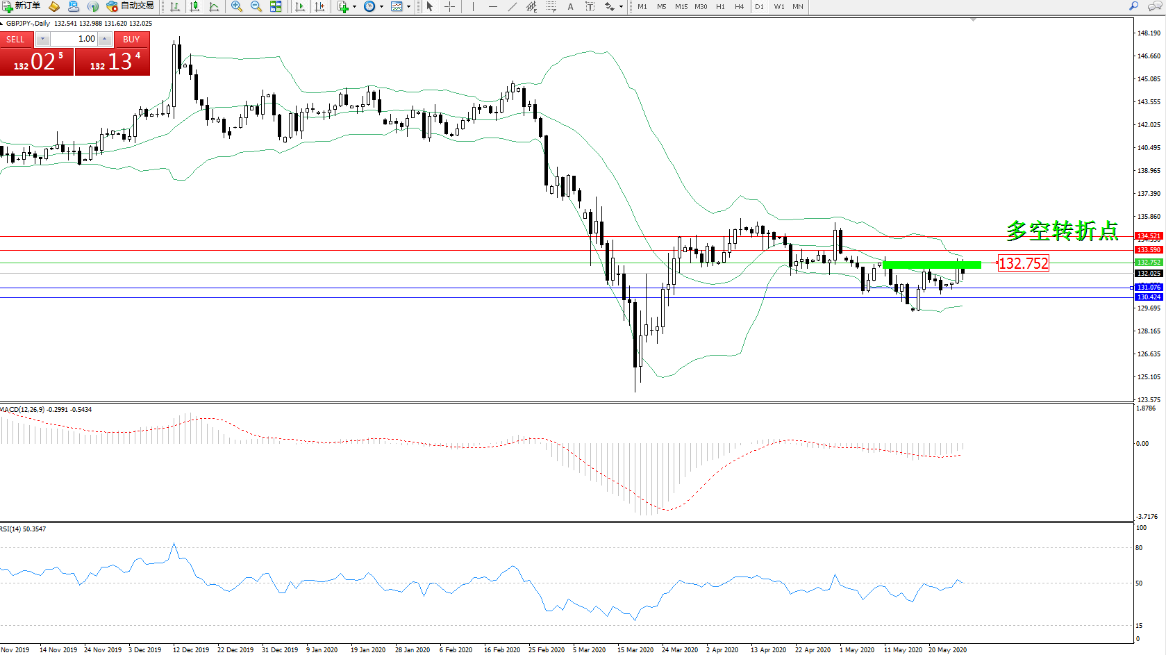 交易策略:132.752下方看跌,目标131.076130.424