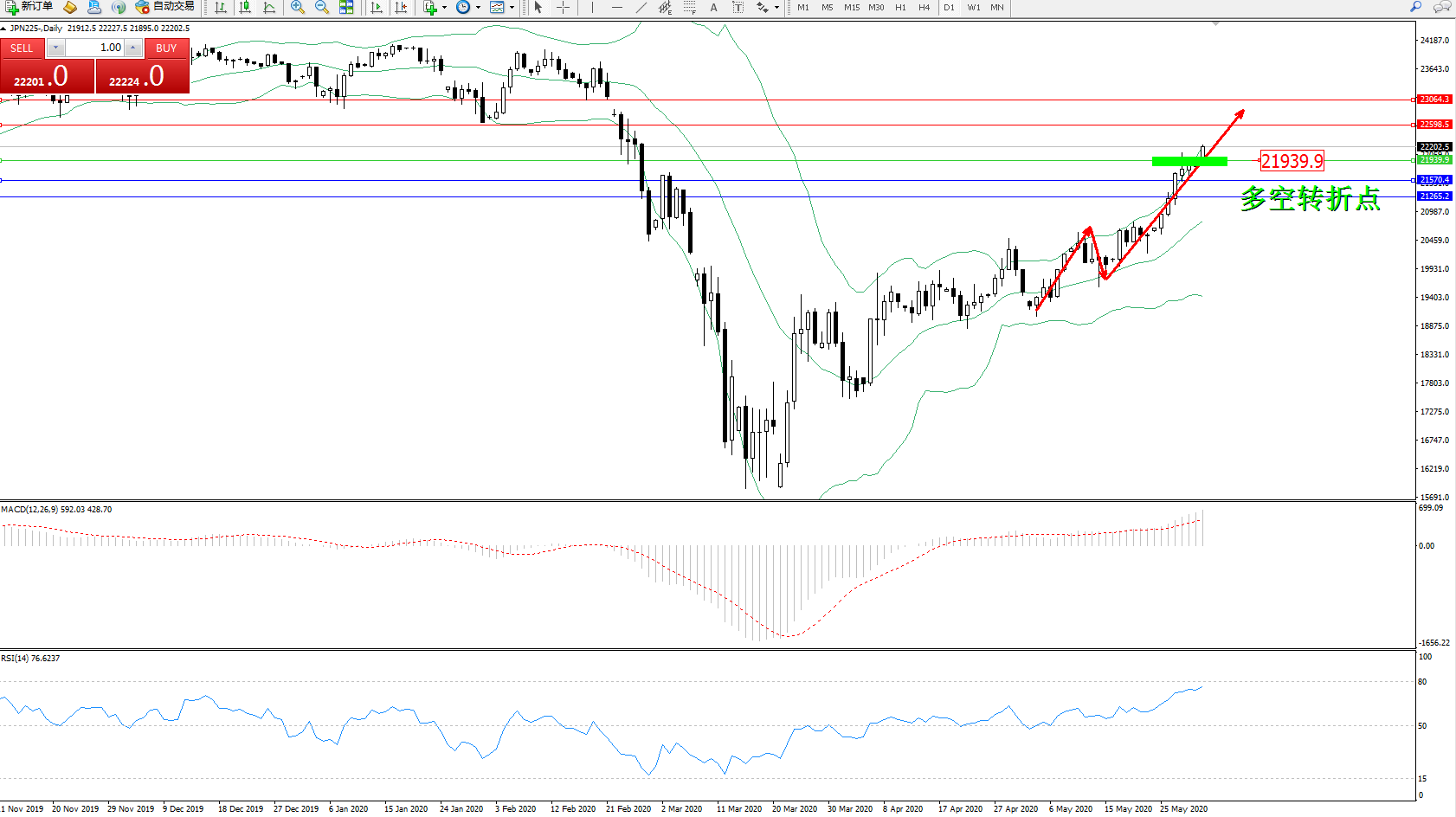 技术点评:多头动力延续布林带指标上轨附近持续震荡上扬中,且未见其止步或减弱态势,上行态势良好,布林带指标呈张口走势中,有继续扩大张口迹象,MACD指标处于0轴线上方多头区域持续拉升中,RSI指标处于多头区域持续拉升上扬,即将触及超买区80均衡线附近;