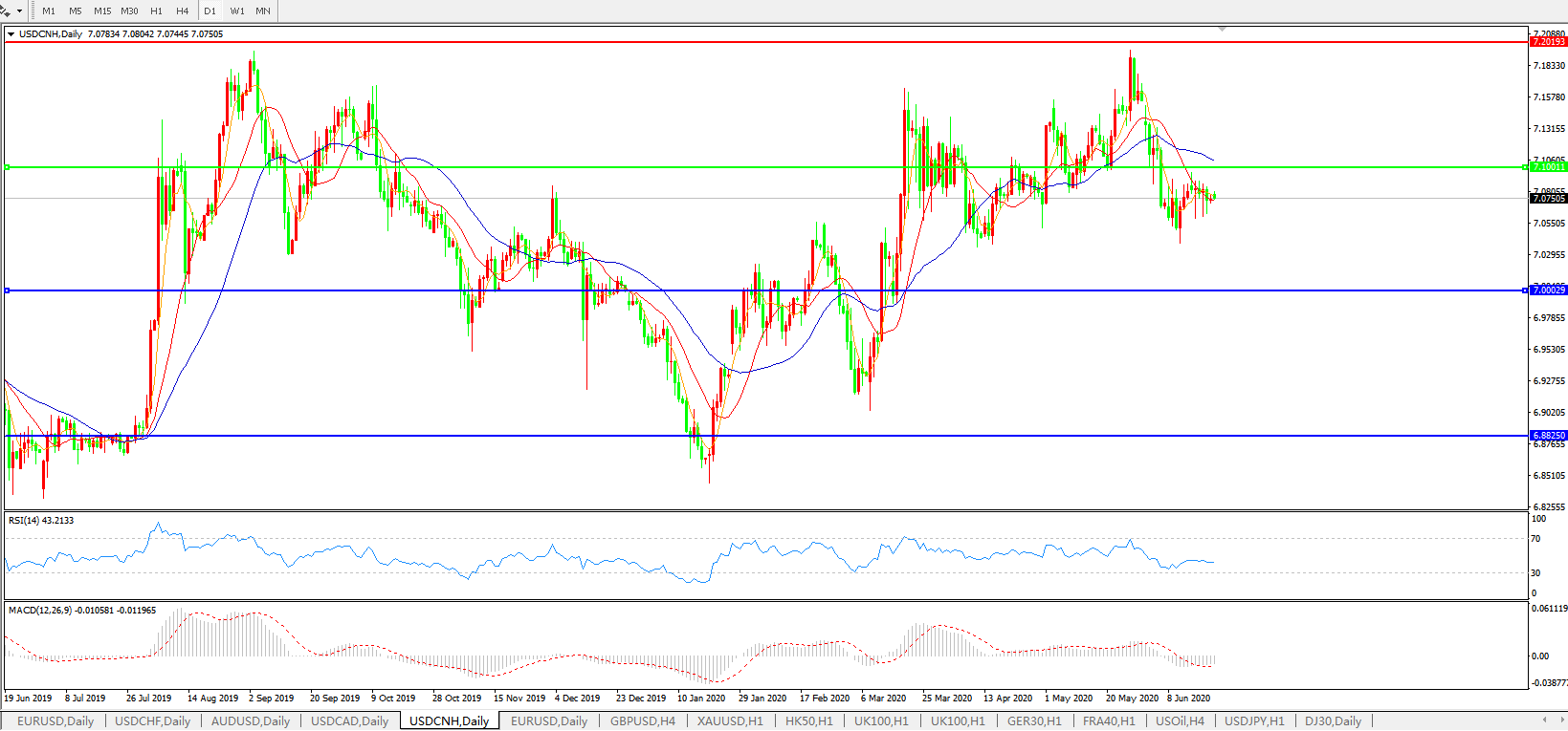 交易策略: 在7.1000之下,看跌,目标价位为7.0000,然后为6.8820。