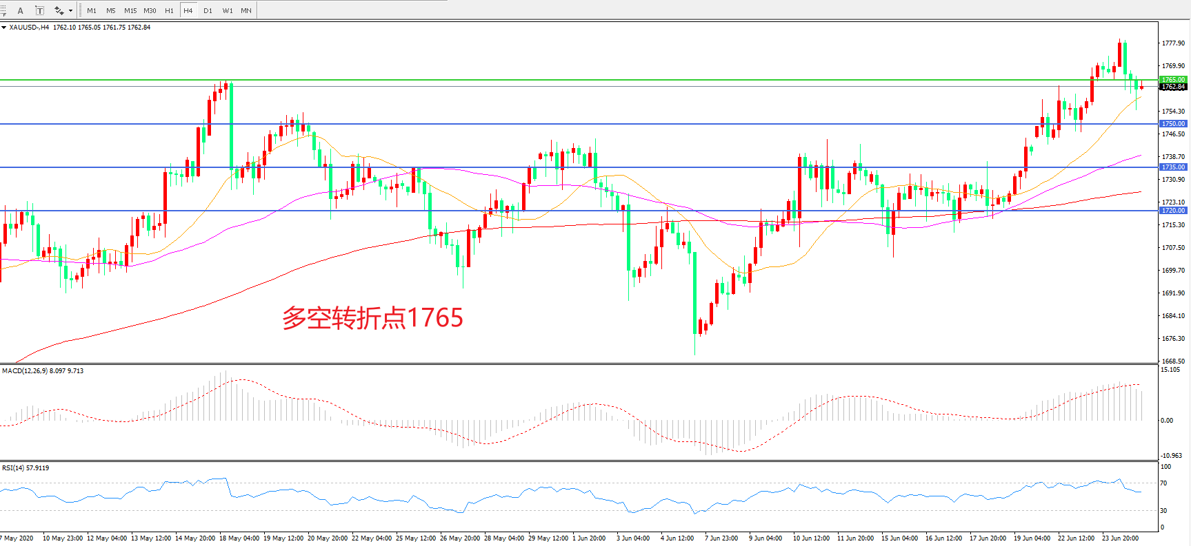交易策略:在1765.00之上看涨,目标1780.00 1800.00