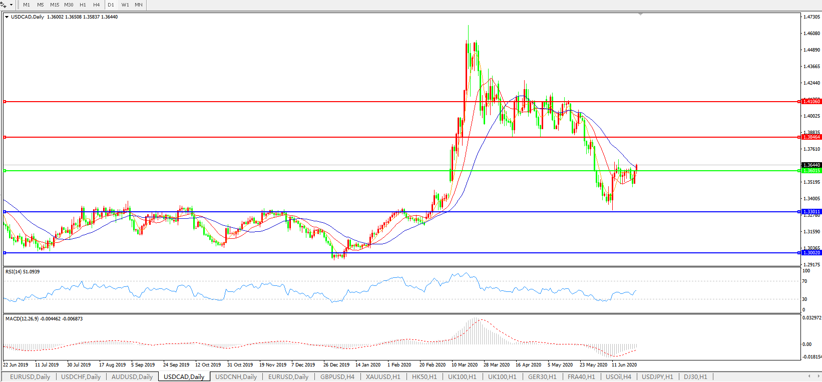 美元兑加元USDCAD 日线图: