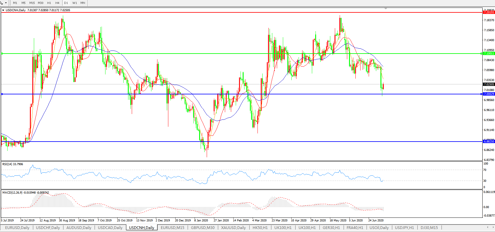 美元兑人民币USDCNH    日线图: