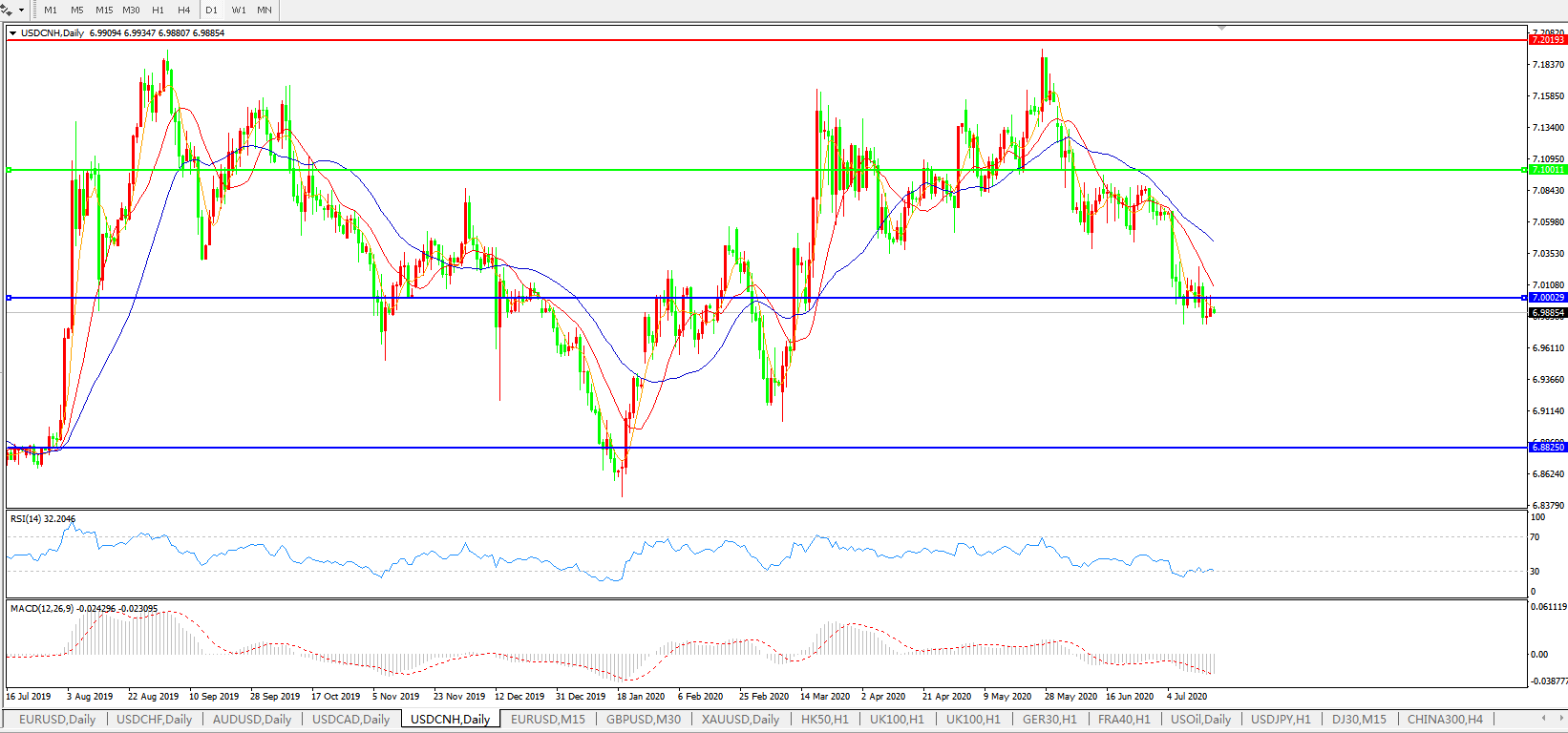 备选策略: 在7.1000之上,看涨,目标价位为7.2000,然后为7.3000。