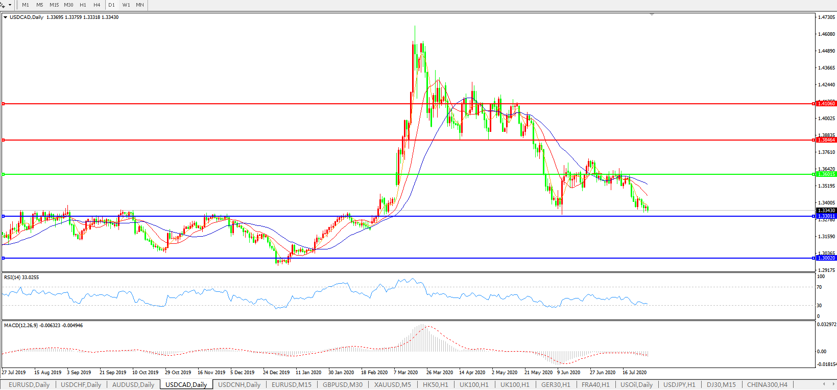 美元兑加元USDCAD    日线图: