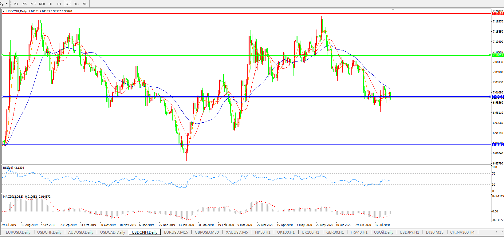备选策略: 在7.1000之上,看涨,目标价位为7.2000,然后为7.3000。