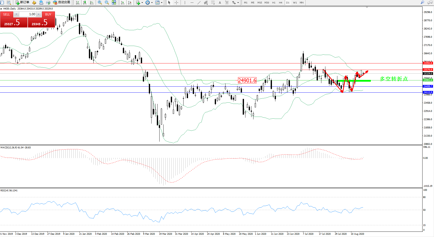 恒指HK50 ——日K线图显示: