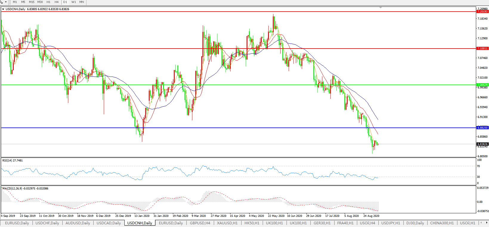 美元兑人民币USDCNH 日线图: